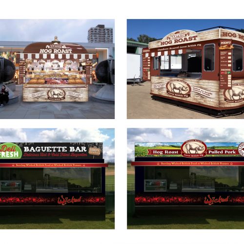 We have designed and fitted out many food court units, most with specific themed graphics. For some, the base unit remained the same and we supplied various different header panels that were inter-changeable depending on what style of food the company were supplying. The units had to be eyecatching and smart, and be instantly recognisable as to what food was on offer. We can also visualise what the units will look like and we have designed and produced presentation documents featuring visualised units for those companies pitching for new contracts which has been a very aluable service to our clients.