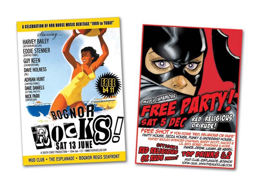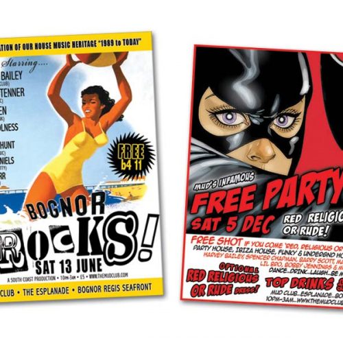 For a flyer to really get noticed when placed into a hand at the end of a night out, it’s got about 3 seconds to grab your attention. So a concept is very important to generate interest to make the person want to read on. Flyer artworks for music events have to be fresh and contemporary, so it is a constant challenge to keep up with trends and be at the forefront with cutting edge design, in order to get bums on seats for club events. Concepts were regularly built into events to help give them a memorable edge over competitors, and this is an area of speciality in our design skills.
