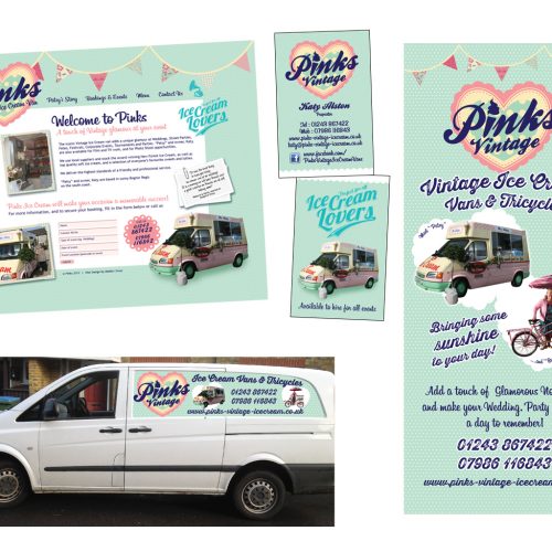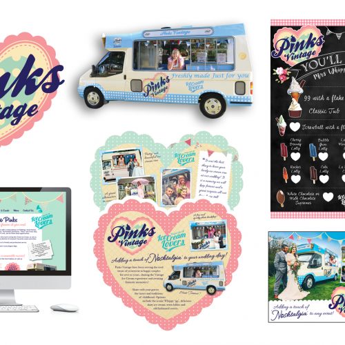 When Katy from Pinks Vintage first met Emma from Media Circus, the business was in it’s infancy. She had sourced business cards from Vistaprint, but wasn’t happy with the look, and felt it devalued the business, and she lacked confidence to go out and sell herself and her concept. Emma had a meeting with Katy and took time to understand her, and her vision, and then went away and designed a new logo, a complete branding style which included a website design, business cards, flyers, press advertising and more.